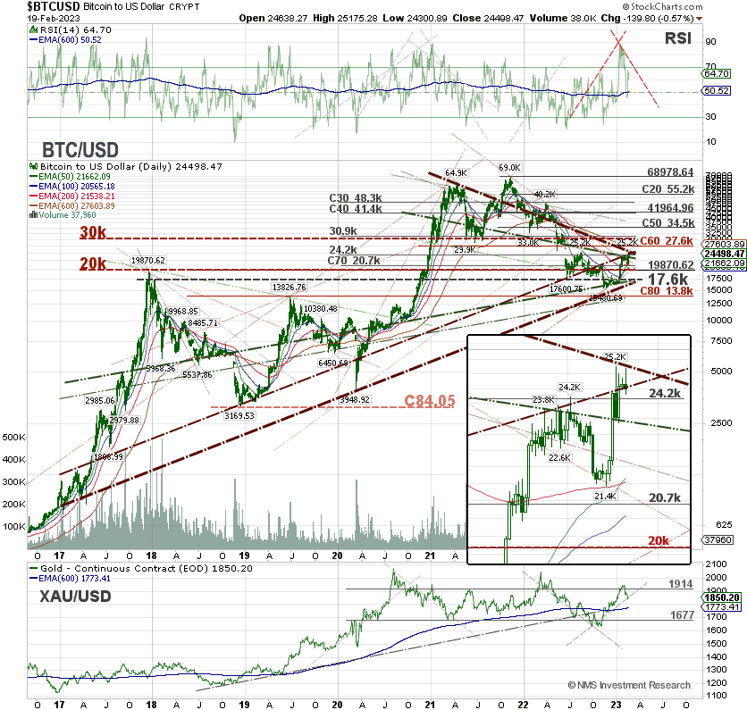 Bitcoin is retesting the trendline resistance at around $25.1k while everyone is trying to figure out what is behind the bullish momentum in cryptocurrency. A breakout could send bitcoin higher to test the $27.6k level, coincidentally, its 600-day EMA. More good news for the bulls is that a golden cross has emerged.